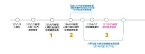 2. 例如外國技術人力於 115 年 1 月 1 日入境來臺工作,於 115 年 6 月 5 日及 116年 6 月 5 日已辦理入國日滿 6 及 18 個月定期健康檢查。因故於 117 年 6 月 10日轉換雇主,距前次健康檢查(116 年 6 月 5 日)已逾 1 年未接受健康檢查。